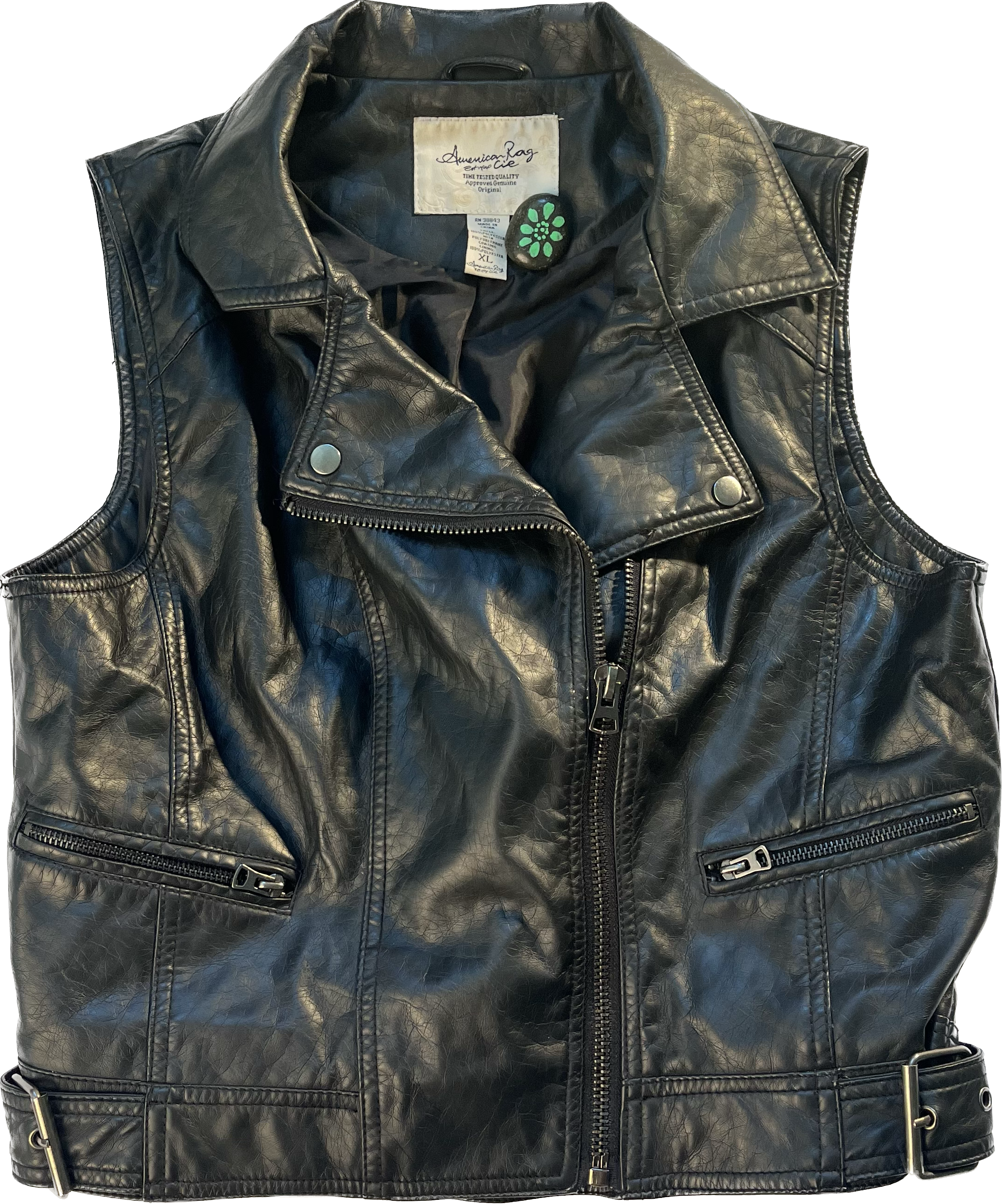 Rock a rebellious edge with the American Rag Faux Leather Vest in Black. Pair it with ripped jeans, a vintage band tee, and combat boots for a rugged streetwear look that exudes attitude and style.