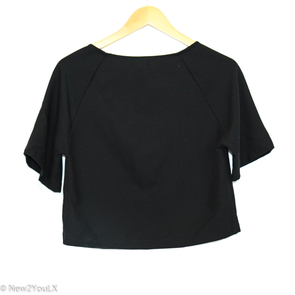 A simple black short sleeve blouse to wear under a nice blazer or a jacket. This blouse is super versatile.