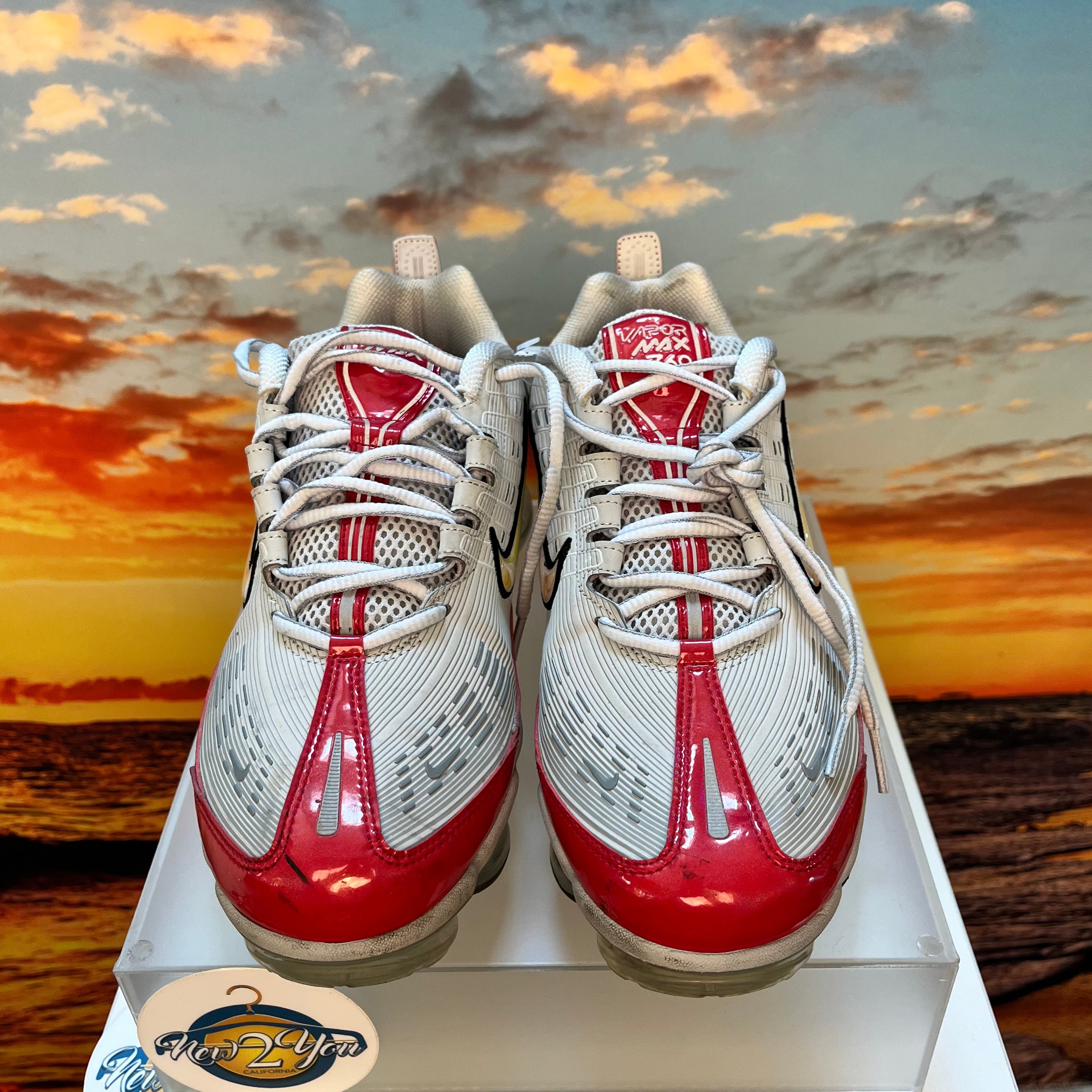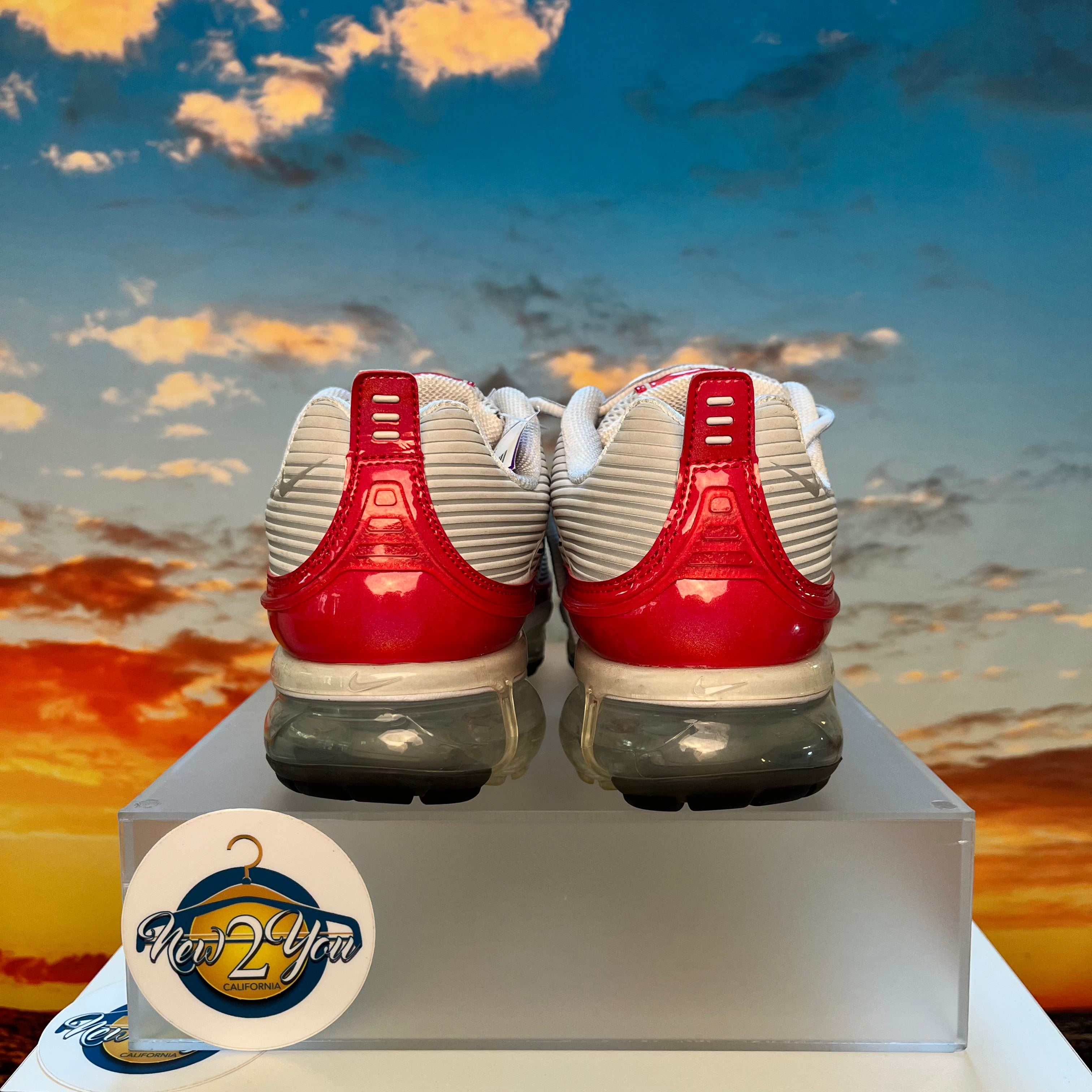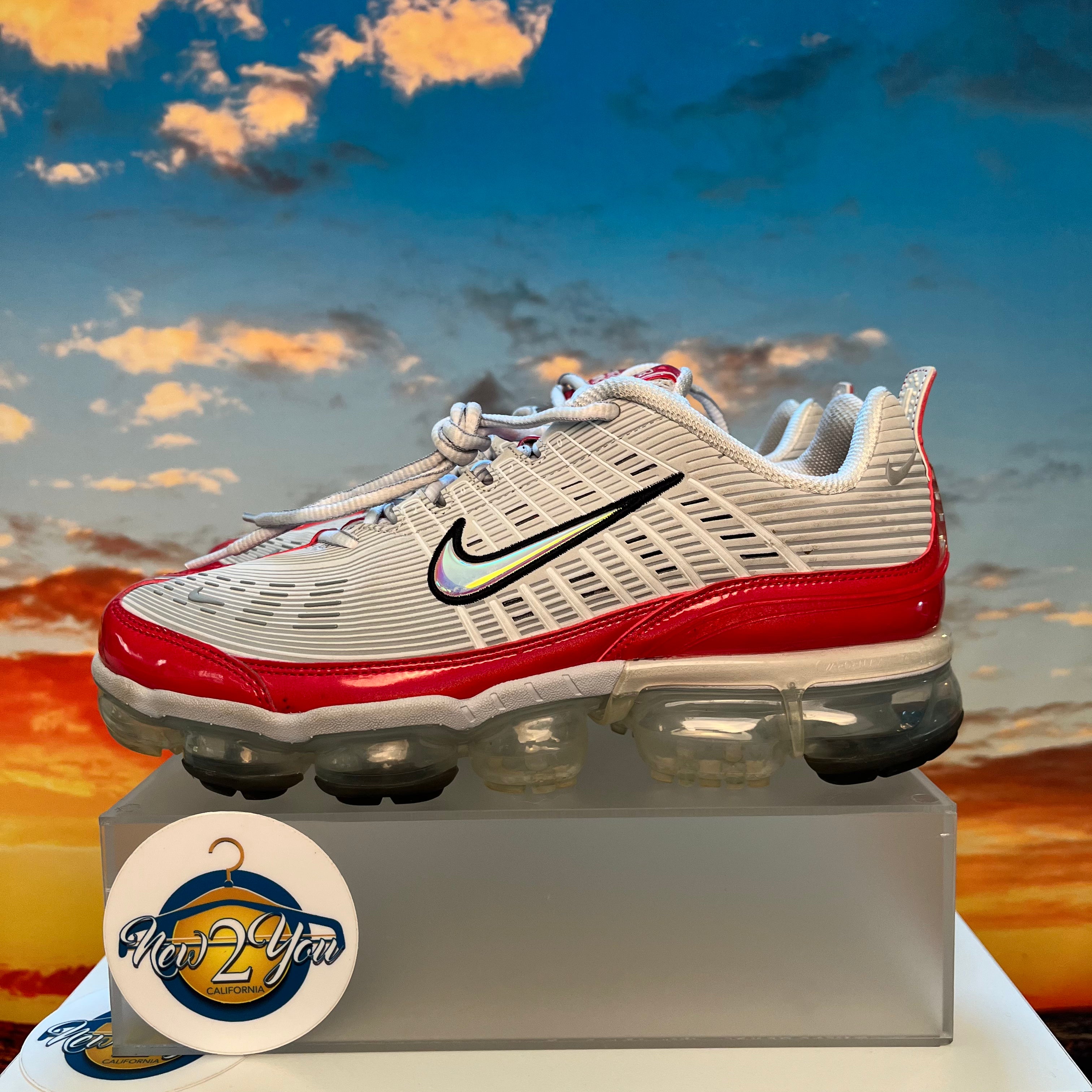 The Air VaporMax 360 is a hybrid silhouette that combines Nike’s revolutionary VaporMax platform with the ventilated upper of the Air Max 360. The latter is rendered in an OG colorway that originally launched in 2006 as part of Nike’s History of Air collection. Featuring a light grey base with red patent leather overlays, the design is updated with a silver iridescent Swoosh and ‘2020’ printed on the eyelets.