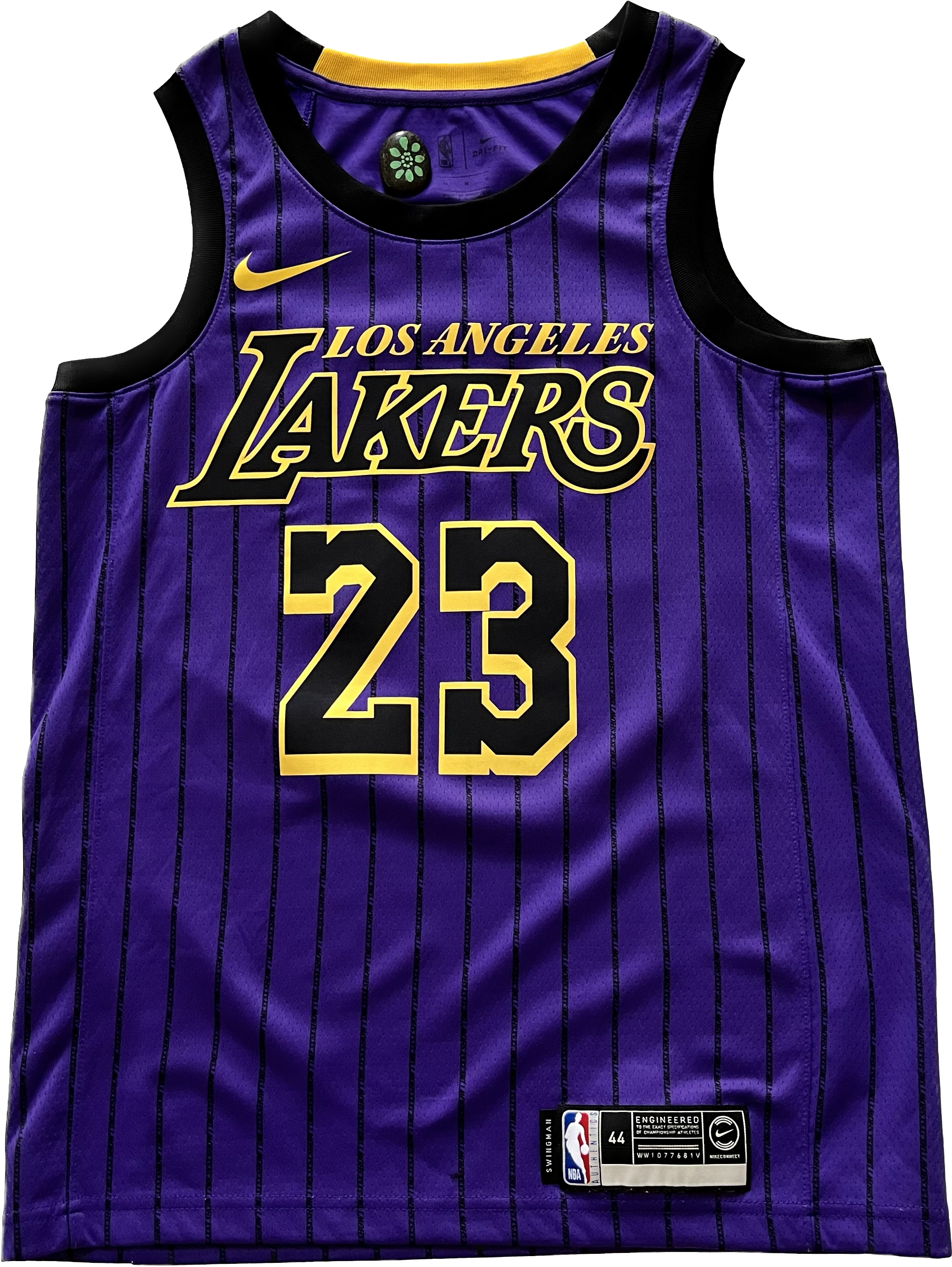 Gear up with this Nike Los Angeles Lakers jersey, showcasing LeBron James' legendary #23. Representing one of the greatest players in NBA history, this jersey is a must-have for any dedicated fan.