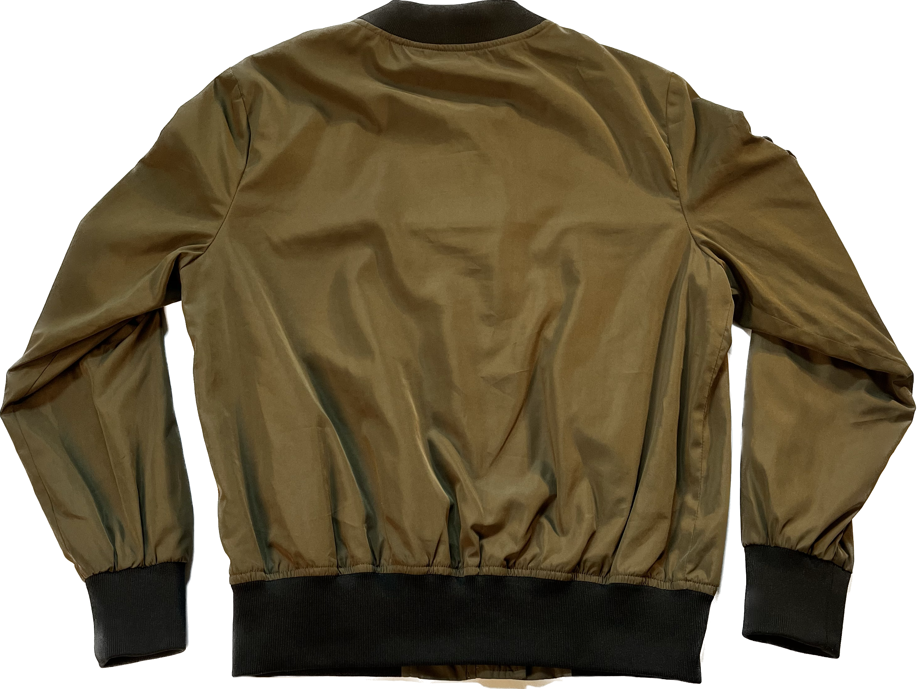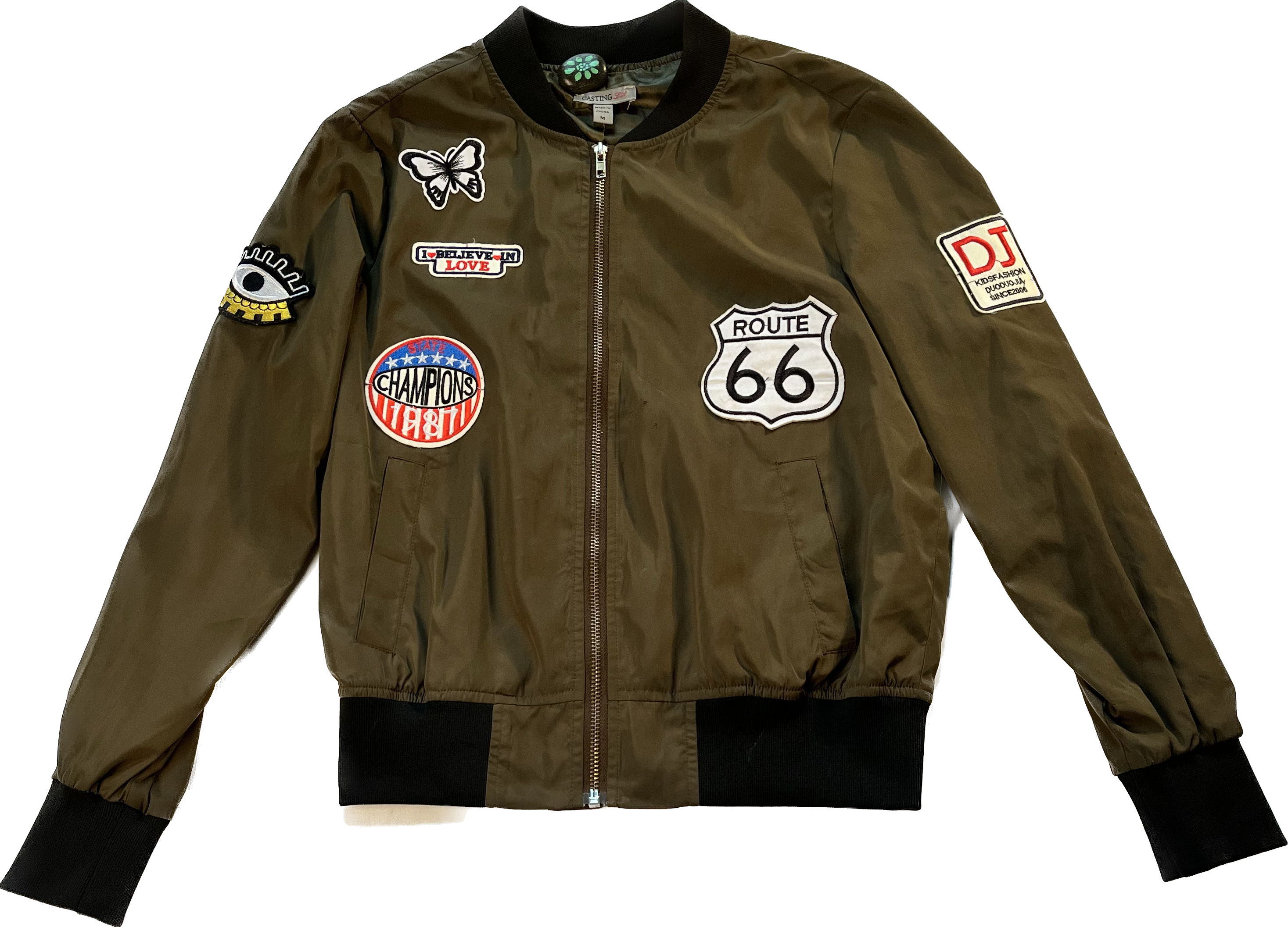 Embrace urban chic with this army green bomber jacket adorned with eclectic patches. Perfect for adding a touch of individuality to your wardrobe, its versatile design ensures both style and comfort wherever you go.
