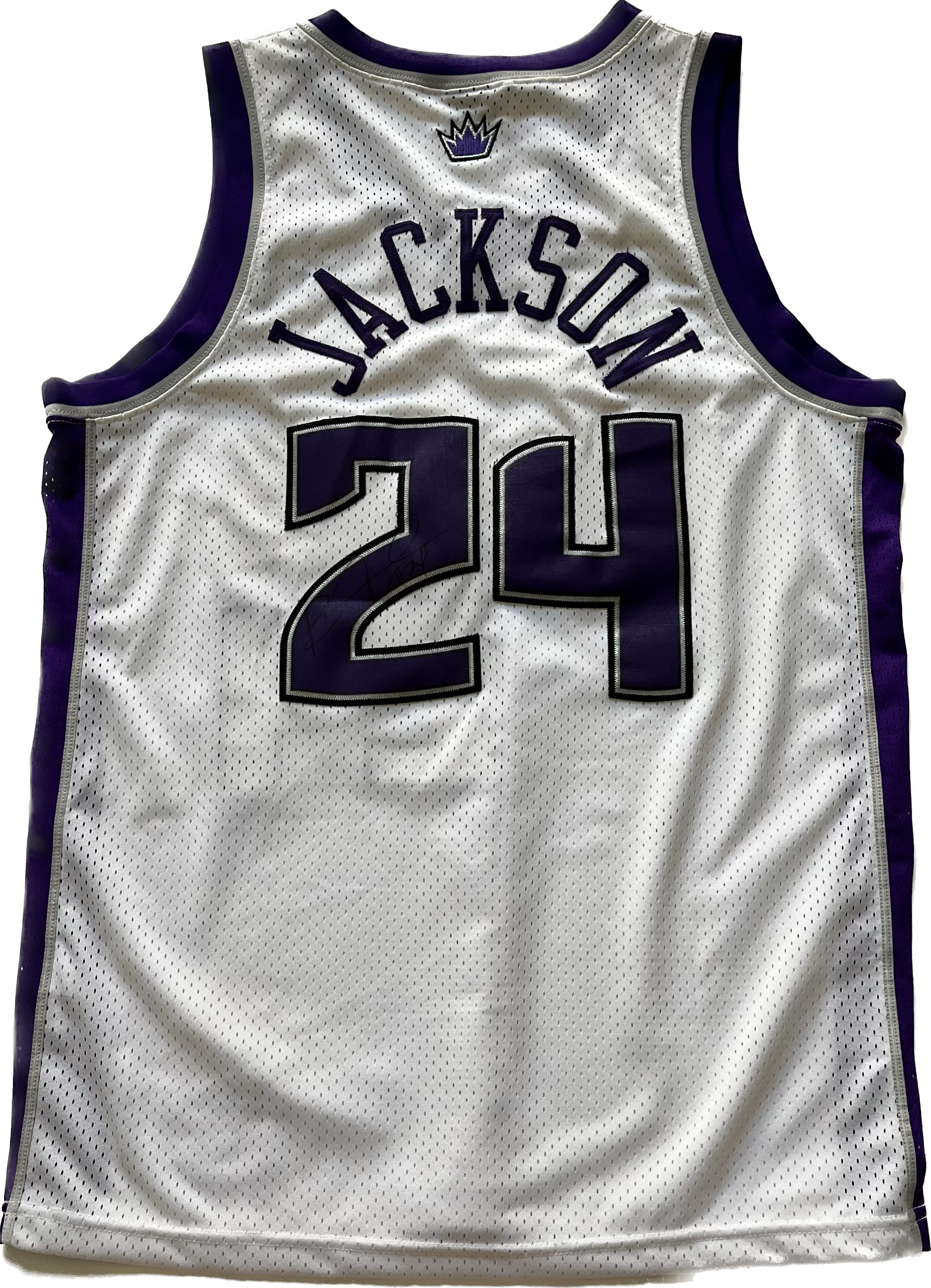 Own a piece of NBA history with this signed Sacramento Kings Nike jersey featuring Bobby Jackson's #24. Known for his clutch performances and tenacious play, Jackson is a beloved figure in Kings history. Perfect for fans and collectors, this authentic, autographed jersey is a rare and valuable addition to any basketball memorabilia collection.