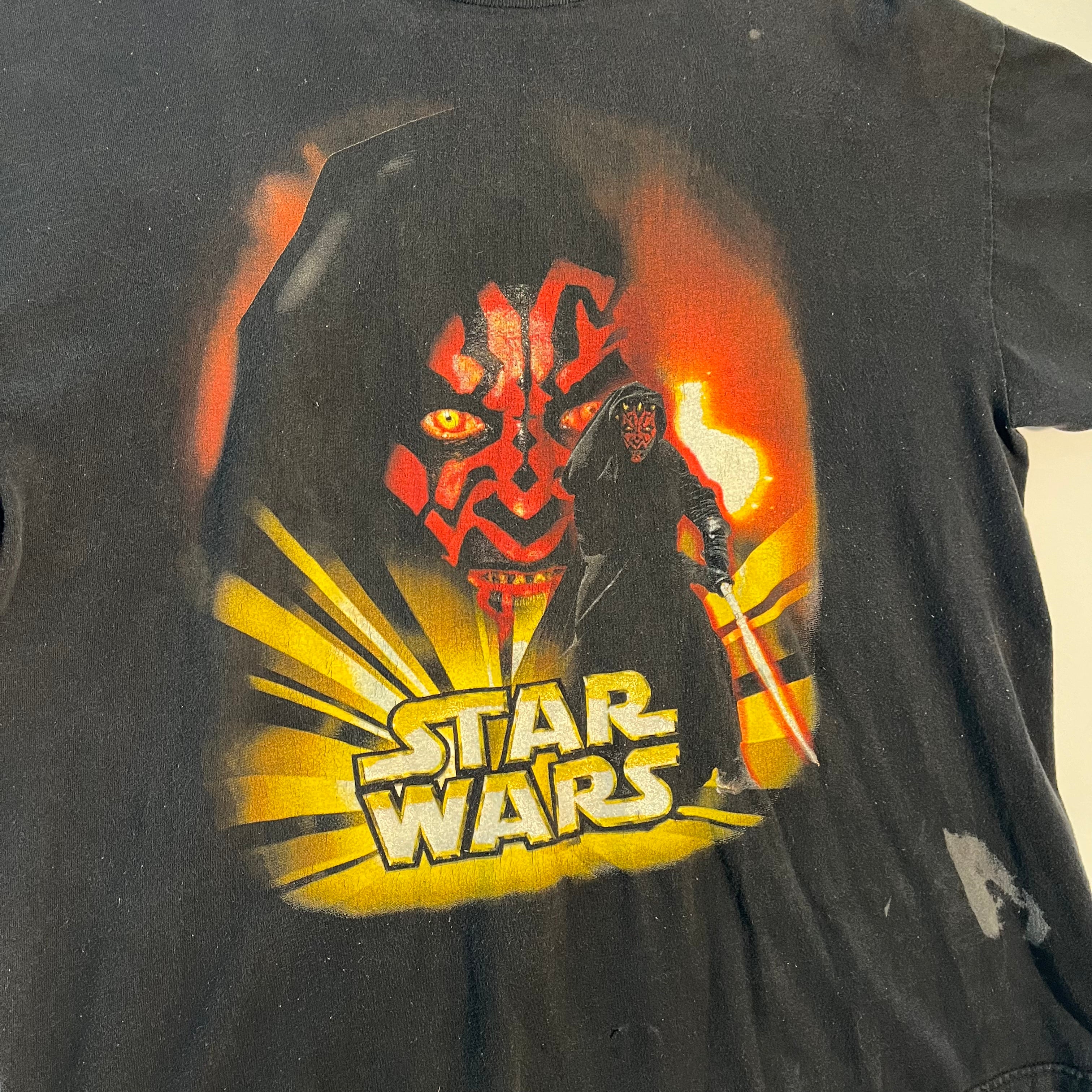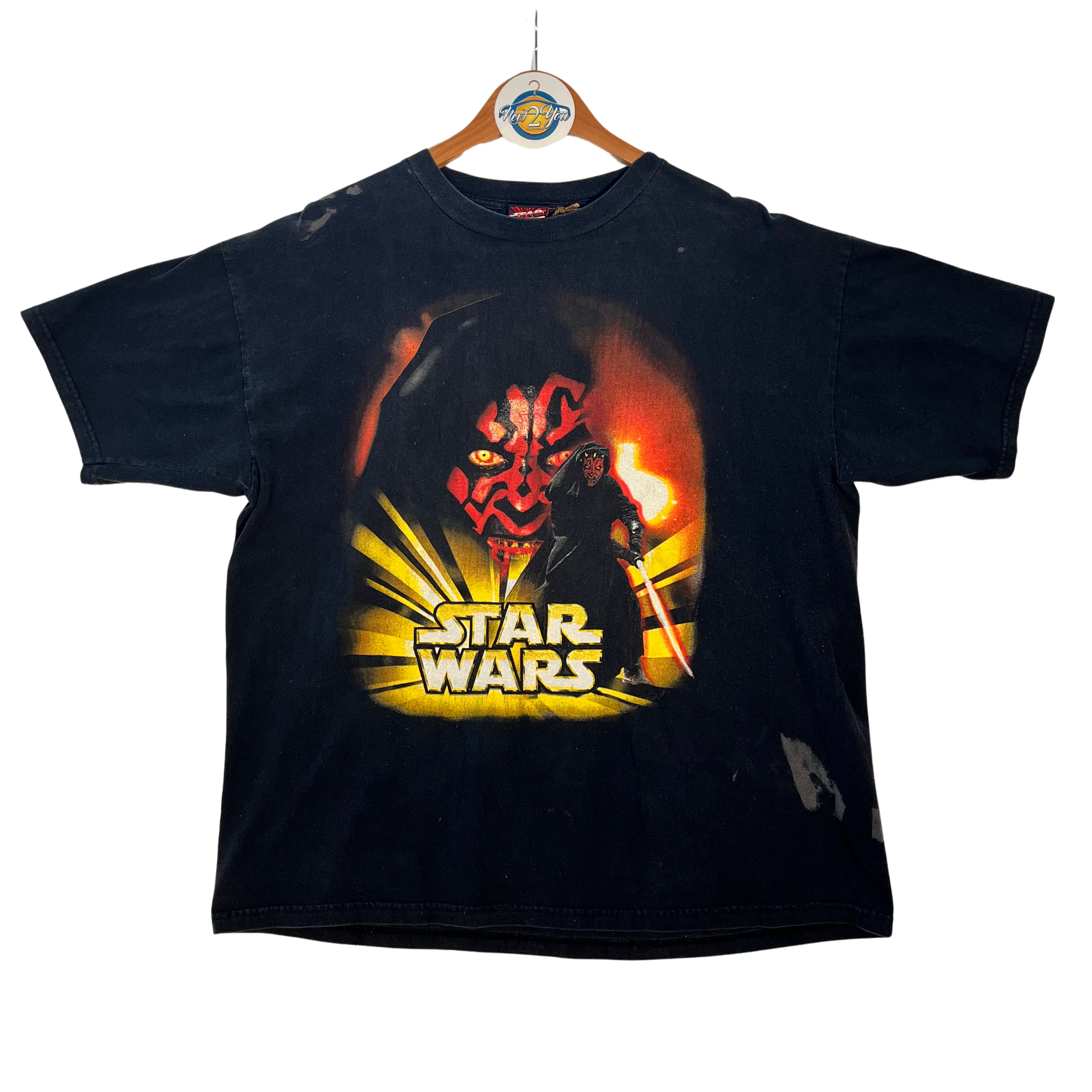 Featuring the menacing visage of the Sith Lord Darth Maul, this tee captures the iconic character's sinister presence. Show off your allegiance to the dark side with this vintage Star Wars tee!