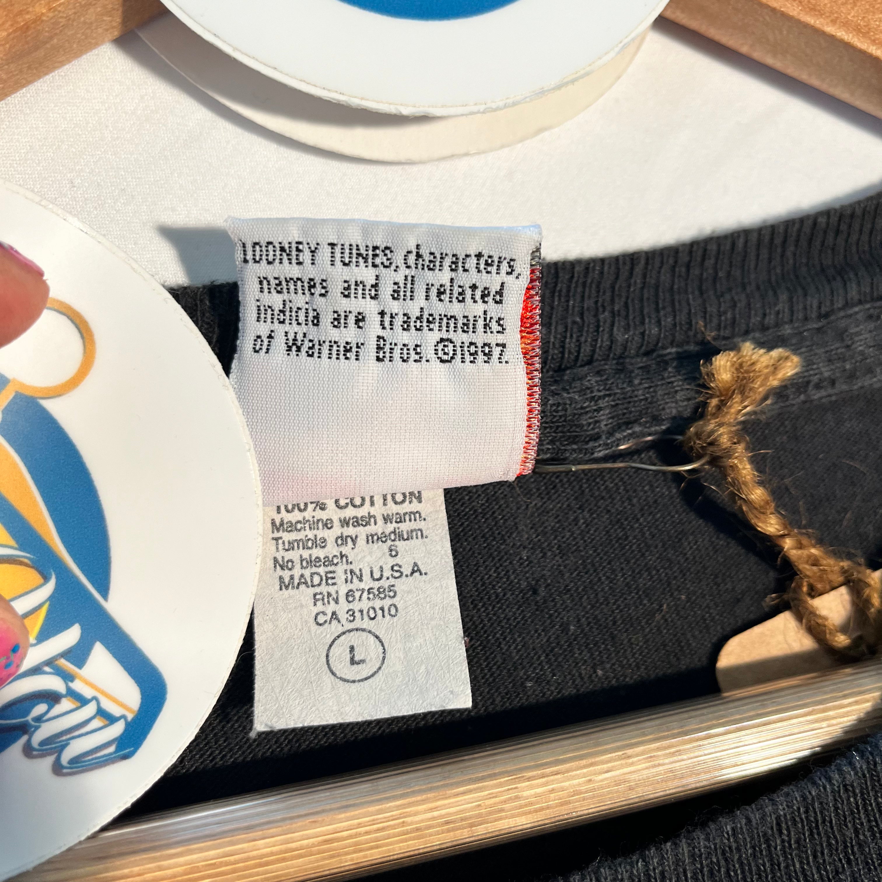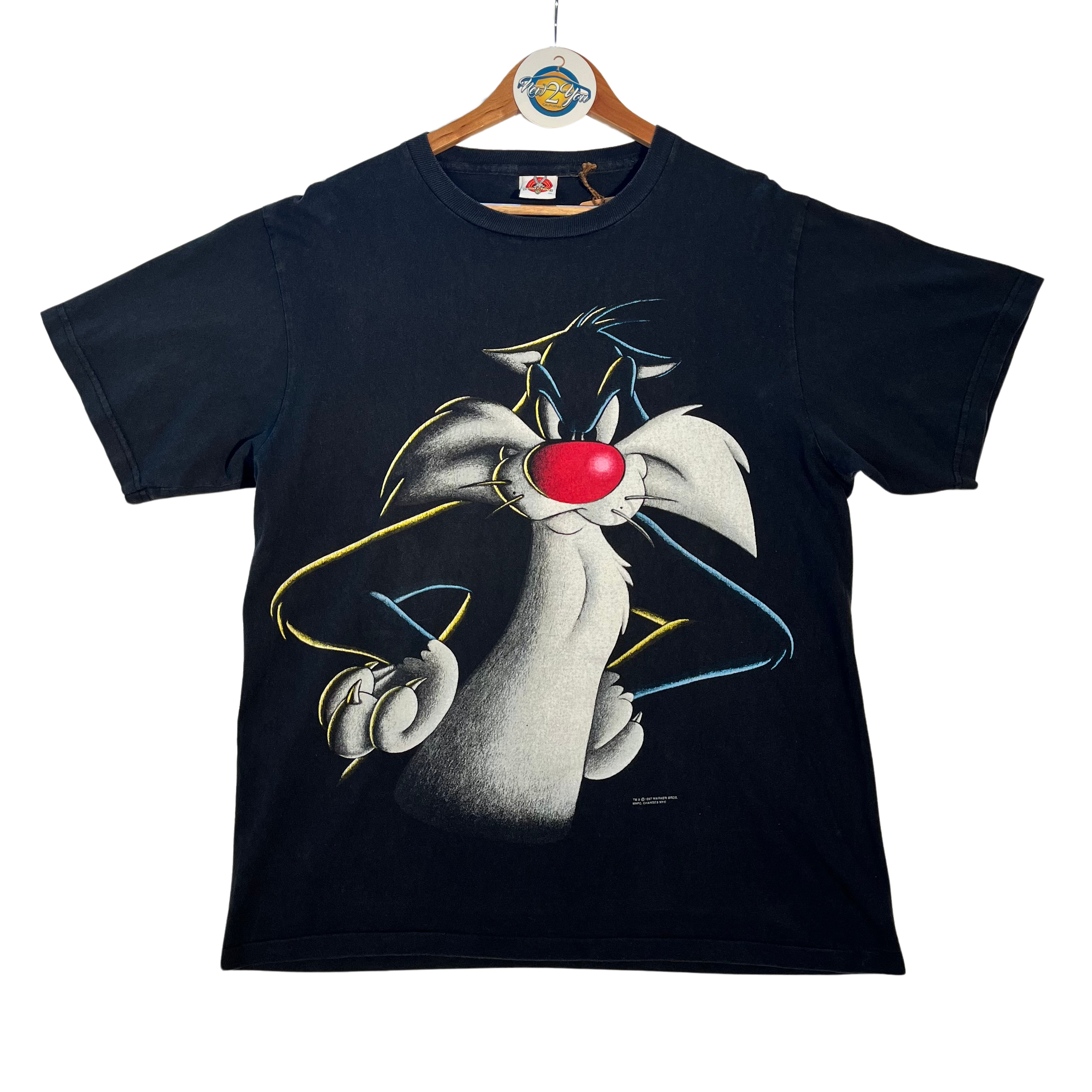 Featuring the iconic Looney Tunes character sporting his signature mean mug expression, this tee captures the playful yet mischievous spirit of Sylvester. Whether you're reminiscing about Saturday morning cartoons or making a bold fashion statement, this tee is sure to turn heads and bring a smile to your face!
